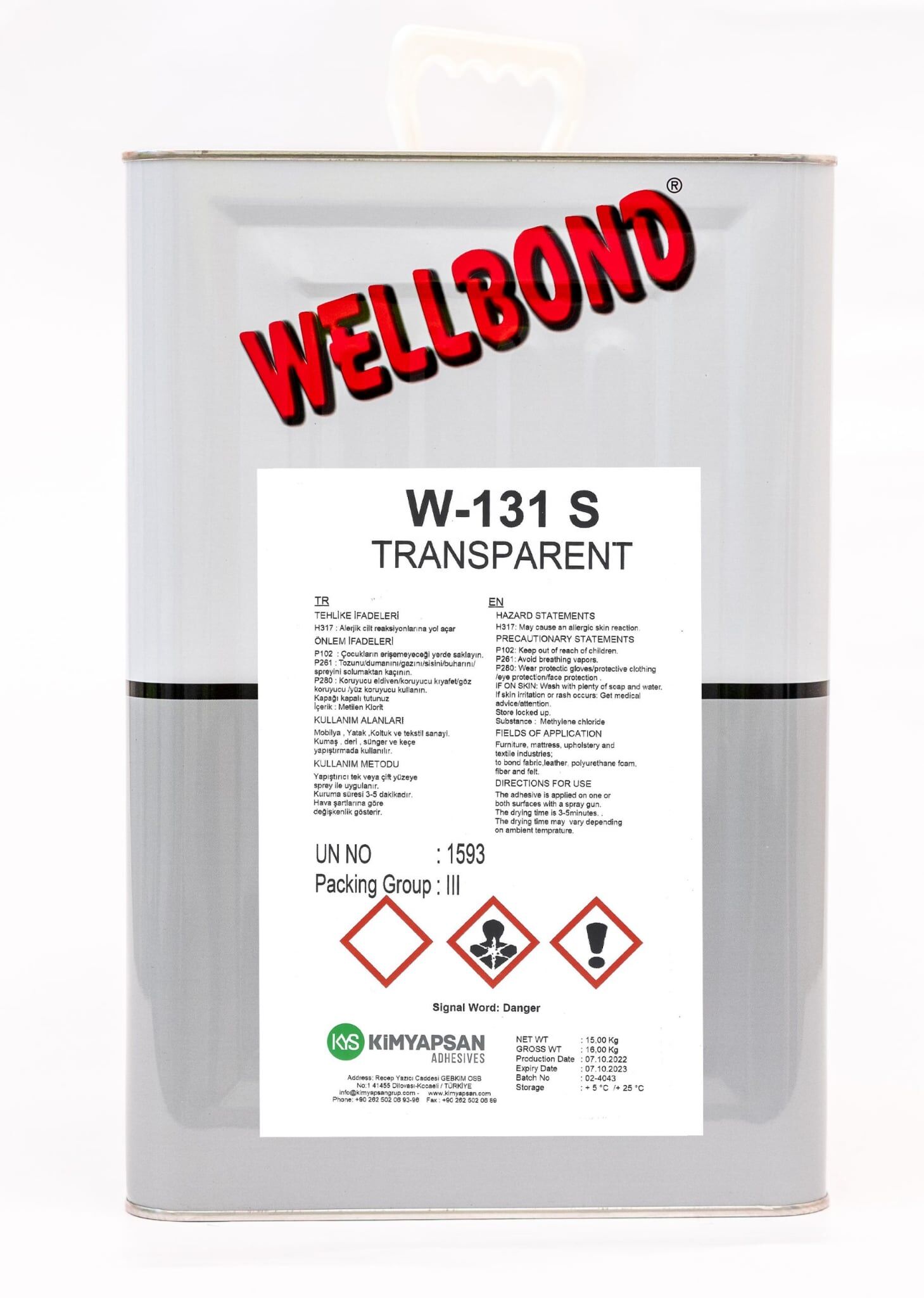 Κόλλα Wellbond W-131 S Θεσσαλονίκη. Χρησιμοποιείται κυρίως στην παραγωγή στρωμάτων. Παράγεται για συγκόλληση. Δοχείο: 15 κιλά.
